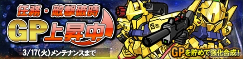 「敵擊破時獲得GP增量活動」會增加在「任務」中擊破敵機體時獲得的「GP」。請來多加獲得強化機體時不可或缺的「GP」,用來幫助強化機體吧。