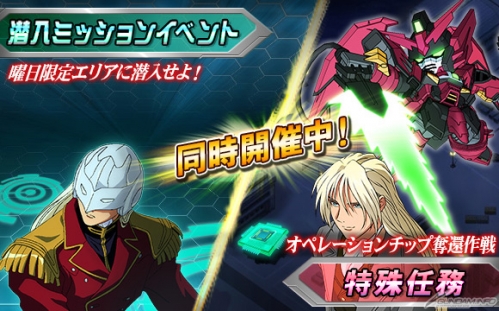 今天起同時開始「特殊任務『OP晶片奪還作戰』」、「潛入任務活動」、「駕駛員合成經驗值增量期間」等3個活動,所有活動都是對遊戲進行非常有利的內容。請務必趁這個機會來玩遊戲吧。