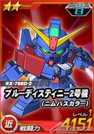 ※「★2 藍色命運2號機(尼姆巴斯配色)」、「★2 藍色命運3號機」、「★2 能天使鋼彈」會以Lv20已成長的狀態配送。