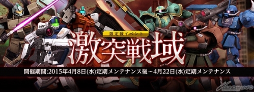 今天4月8日(三)起開始舉辦的限定活動戰「激突戰域」,是在大規模戰加入一定COST以下的機體才能出擊的特別規則「限定戰」,參加限定戰的話可以獲得「出擊點數」並取得豪華獎品。