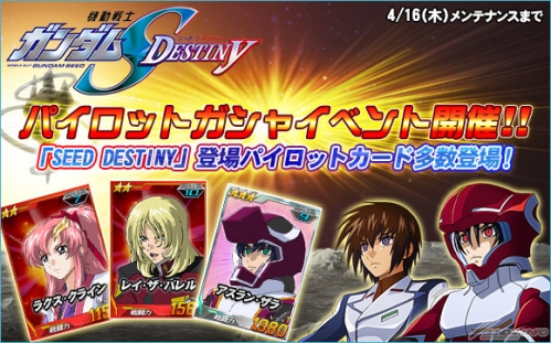 活動期間中,白金駕駛員轉蛋以及駕駛員轉蛋的陣容,會追加許多『機動戰士鋼彈SEED DESTINY』的駕駛員登場。