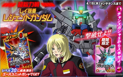 超總力戰到4月16日(四)為止的限定期間內,有「雷駕駛的傳說鋼彈」登場,在活動期間中,進行任務的時候,有機會遭遇「雷駕駛的傳說鋼彈」。