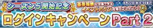 為了紀念第5季開始,期間中根據登入日數將1天送1次「活動徽章」!