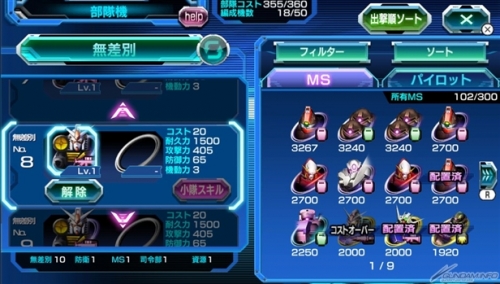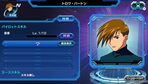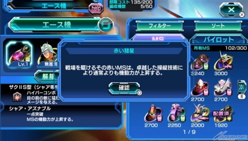 【王牌機】每個部隊只能有1機編成,加上MS持有的「MS技能」,也能夠發動搭乘駕駛員的「王牌技能」。