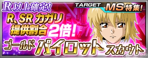 並且在黃金MS徵用中追加R「嫣紅攻擊鋼彈」。且搭配在黃金駕駛員徵用中的SR、R「卡佳里‧由拉‧阿斯哈」出現機率變成2倍。