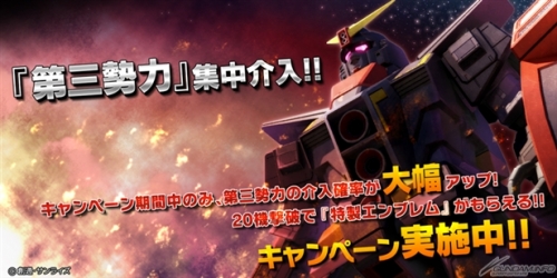活動期間中,第三勢力介入機率大幅提高。擊破20台第三勢力機體後,就可以獲得「特製徽章」。