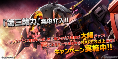 今天起開始本活動,在活動期間中,大幅提高第三勢力「阿普薩拉斯II」和「腦波傳導型鋼彈」的介入機率。