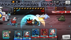 重現原作氣氛的動作,表現的可愛又親切的MS,在戰鬥開始的時候,一口氣同時出擊。MS有攻擊、防衛、支援、妨害、回復、萬能等6種特徴,每台MS都會有其中一種,根據戰鬥的狀況切換前衛・後衛,並搭配時機發動華麗的必殺技吧。