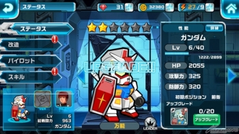 每台MS都有自己的設計圖,收集一定數量的設計圖就可以獲得新的MS。並且收集到已經獲得的MS的設計圖,可以提升MS的星級。星級提高,會使機體的能力大幅提升,也可以在戰鬥中更加活躍。設計圖可以在過關的時候,或是從轉蛋等等中獲得,收集各式各樣的機體和駕駛員,強化他們來做出最強的隊伍吧。