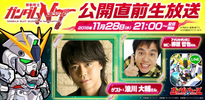 來賓將邀請曾參與『機動戰士鋼彈UC』,同時也是「LINE: 鋼彈大亂鬥」玩家的聲優浪川大輔,挑戰各種企劃!此外,也將介紹已『鋼彈NT』為藍本的新活動,也將聲優們蒞臨,談論電影上映在即的心境等等對談!