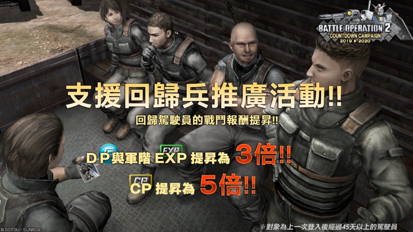4. 45天以上未登入激戰任務2的駕駛員限定!