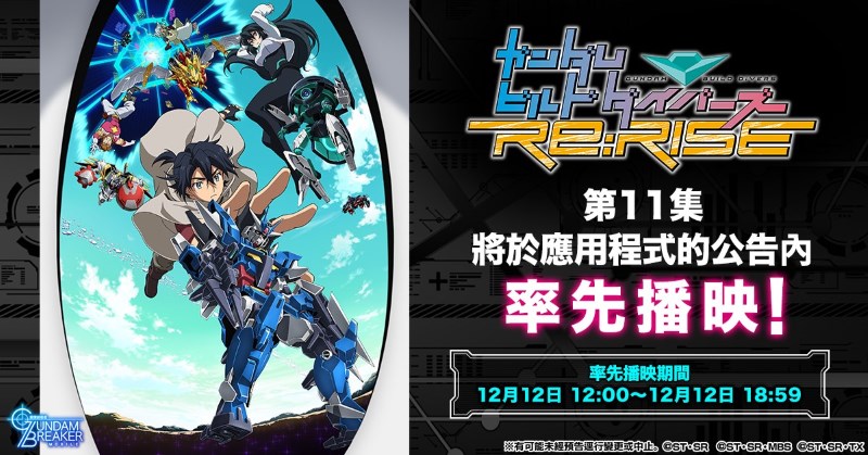 針對iOS/Android的智慧型手機遊戲應用程式「鋼彈創壞者 MOBILE」中,已決定搶先播出『鋼彈創鬥者潛網大戰Re:RISE』第11集。