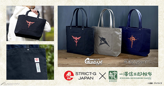 採納鋼彈世界觀的成衣商店「STRICT-G」,和京都帆布包店「一澤信三郎帆布」聯名的「手提袋」3種開始販售。
