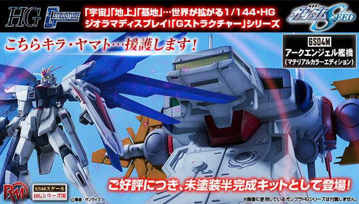 可以輕鬆地展示1/144的HG系列鋼彈模型,享受世界觀的「GStructure」,『機動戰士鋼彈SEED』中「大天使號」艦橋模型以平易近人的未塗装半完成套件再次登場。配合HG系列的鋼彈模型,便可以享受想像中的場景。