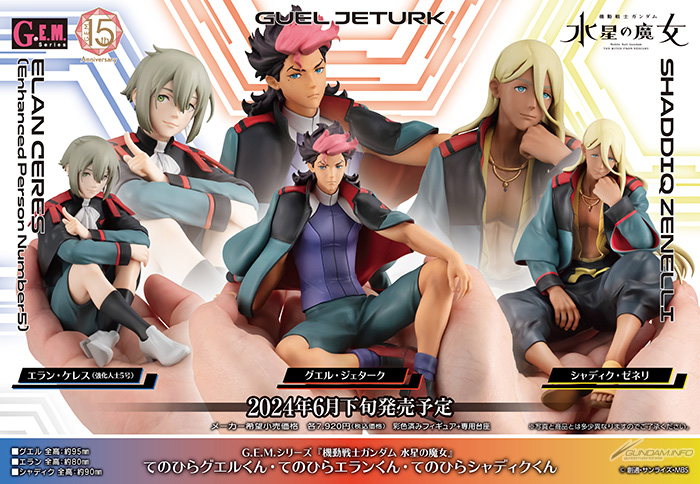 「G.E.M.系列 機動戰士鋼彈 水星的魔女 掌心古爾君」「掌心伊蘭君」「掌心沙迪克君」,6月下旬由MEGA HOUSE發售。售價為各7,920日圓(含稅)。