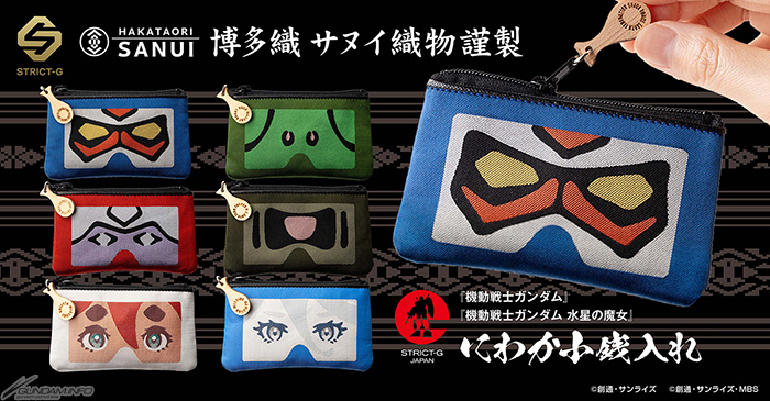 本次聯名的款式是以福岡的郷土藝能「博多仁和加」的半面“仁和加面”為藍本的絹織物零錢包登場。有來自『機動戰士鋼彈』的鋼彈、薩克II、夏亞、哈囉4種,來自『機動戰士鋼彈 水星的魔女』蘇萊塔和米奧琳涅共6種。