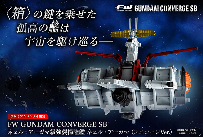 鋼彈食玩「FW GUNDAM CONVERGE」的戰艦陣容「SB系列」,推出『機動戰士鋼彈UC』的「擬・阿卡馬」。