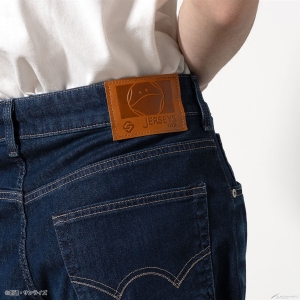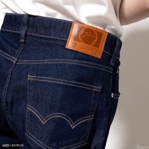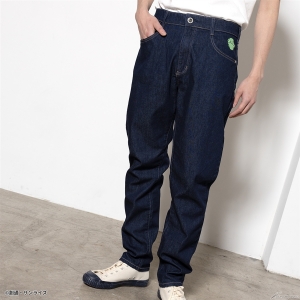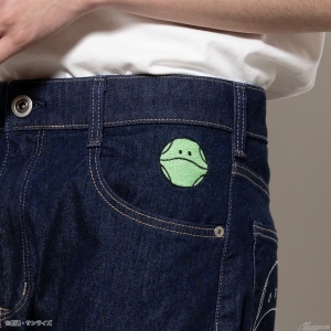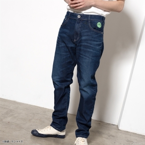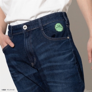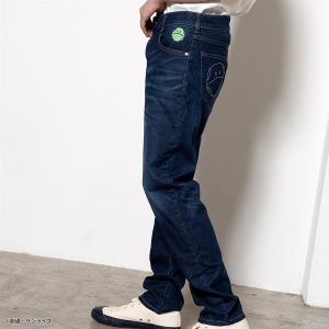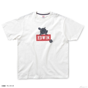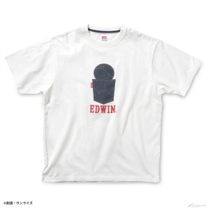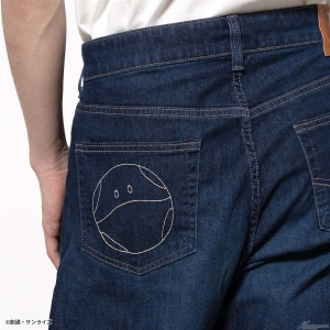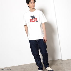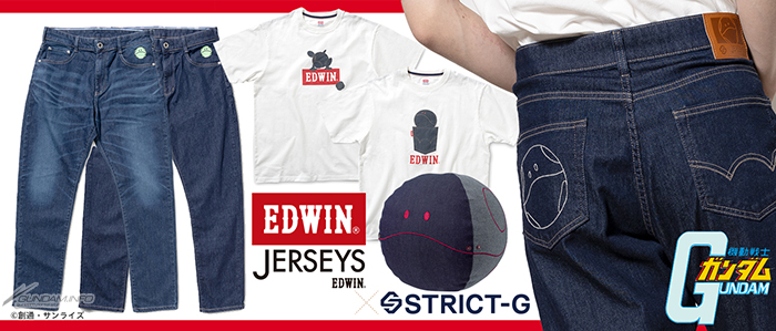 這次的聯名,由舒適性經歷極致進化的超人氣系列「EDWIN JERSEYS」登場。採用“類丹寧”具有伸展性的専用材質,實現宛如針織的肌膚觸感,正如其系列名稱般,實現運動服飾等級的穿著體驗。材質為運動服飾慣用材質的Motion Fit丹寧配上亞麻的夏季材質。維持的一貫的伸縮率,最大限度的融合亞麻的涼爽觸感與尼龍的輕盈特性,適合夏季的彈性丹寧布料,由於木糖醇加工處理,能與人體發出的水分產生反應並有涼爽效果。設計採用『機動戰士鋼彈』中的哈囉為概念,推出One Wash原色和深藍色丹寧2種款式。