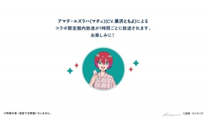 以角色為靈感的五種合作浴缸出現了,浴室裝飾有特別設計的掛毯。 除了展示立牌、彩帶、掛毯和角色介紹海報外,還有一個 matsch (CV. Tomoyo Kurosawa) 將每小時播出一次合作限定的內部廣播。