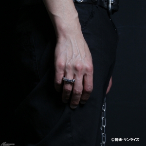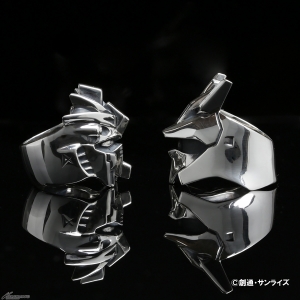 代表阿姆羅和夏亞之間最後一戰的最後時刻的戒指。 ν鋼彈有力的指尖以精緻的造型和銳利的線條再現,與之對峙的沙薩比駕駛艙部分則用無機金屬再現。