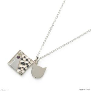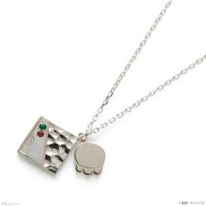 這條銀項鍊的靈感來自馬丘、尼亞安和修吉,設計有水母、貓和海螺圖案以及方形盤子。 盤子上鑲嵌著兩個圖像卡拉寶石和點綴。