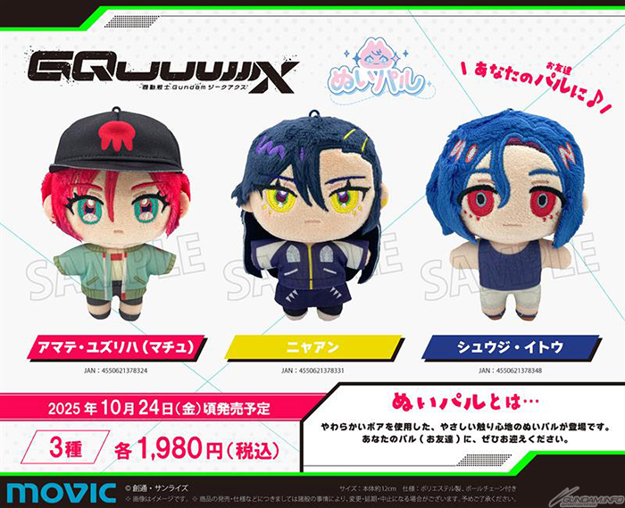Movic 決定發售“機動戰士高達 GQuuuuX”的“Nui Pal”、“Pashako”和“Pins”,現在接受動漫、動漫郵購、Movic 郵購等的預訂。