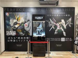 除了販售鋼彈限定高達模型、雜貨、甜點等多款商品外,還舉辦了預定於2026年1月發售的高達模型「PERFECT GRADE UNLEASHED 1/60ν鋼彈」的特別展示。