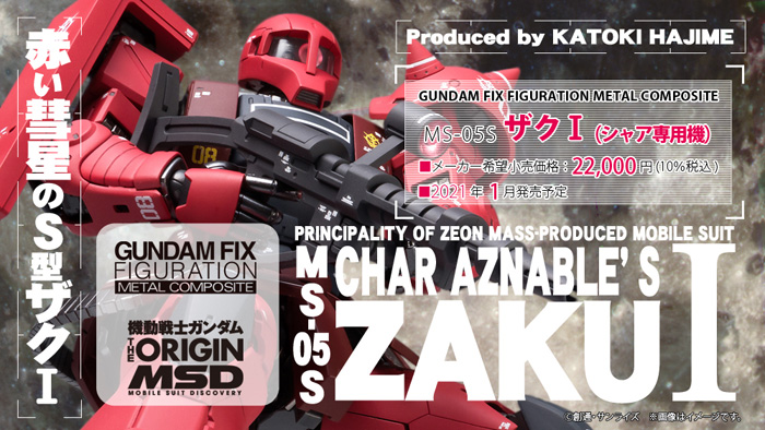 由以壓鑄和ABS為主要材質的完成品模型「GUNDAM FIX FIGURATION METAL COMPOSITE」(G.F.F.M.C)推出,「MS-05S 薩克I(夏亞專用機)」將於2021年1月發售。售價為22,000日圓(含稅)。