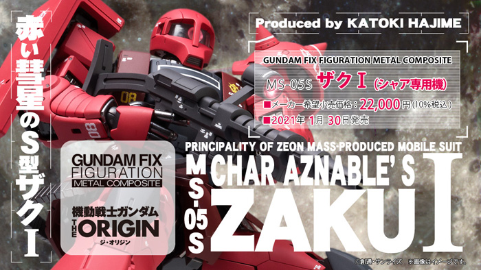 由以壓鑄和ABS為主要材質的完成品模型「GUNDAM FIX FIGURATION METAL COMPOSITE」(G.F.F.M.C)推出,「MS-05S 薩克I(夏亞專用機)」在於1月30日(六)發售。售價為22,000日圓(含稅)。