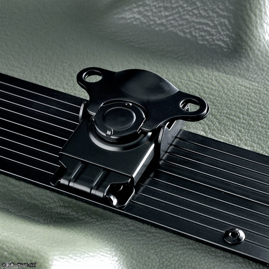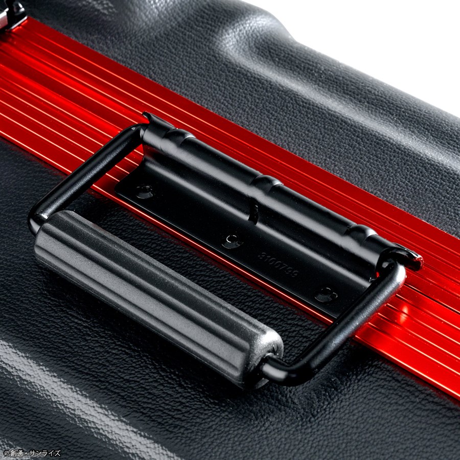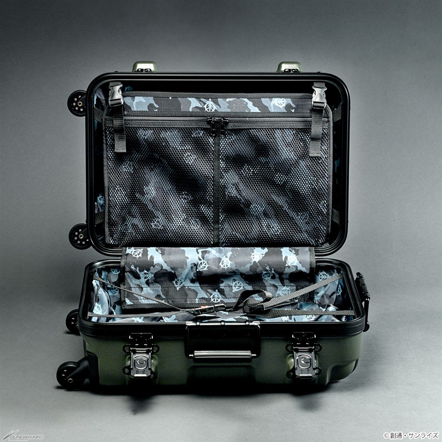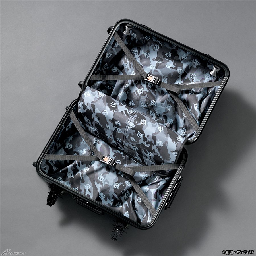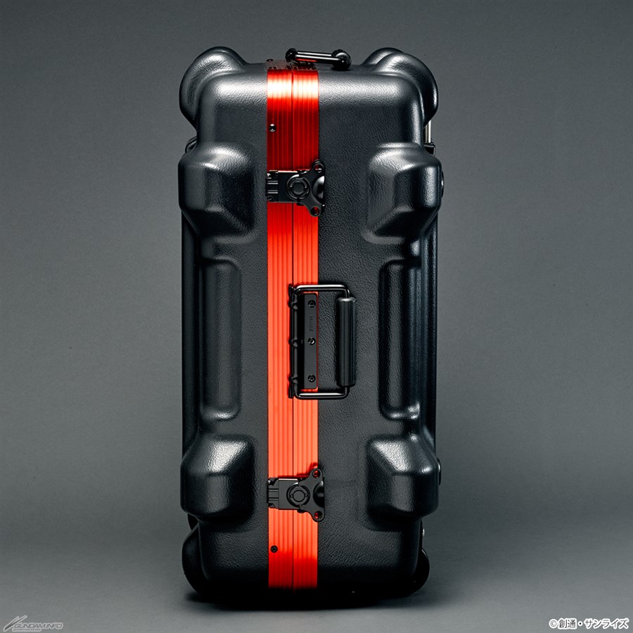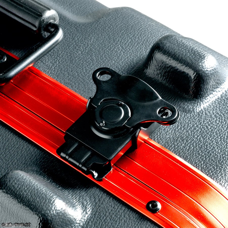 從吉翁軍款式刻有「PROTECTION FOR PRINCIPALITY OF ZEON MOBILE SUITCASE」、及夏亞款式刻有「PROTECTION FOR RED COMET CHAR AZNABLE MOBILE SUITCASE」的箱身前面的鋁製徽章到内裝布料,皆是為了本次合作特別設計的規格。伴隨著兼具設計感和防護性的PROTEX CORE CR系列原有骨架(凹凸)構造,是款充滿軍事感的成品。