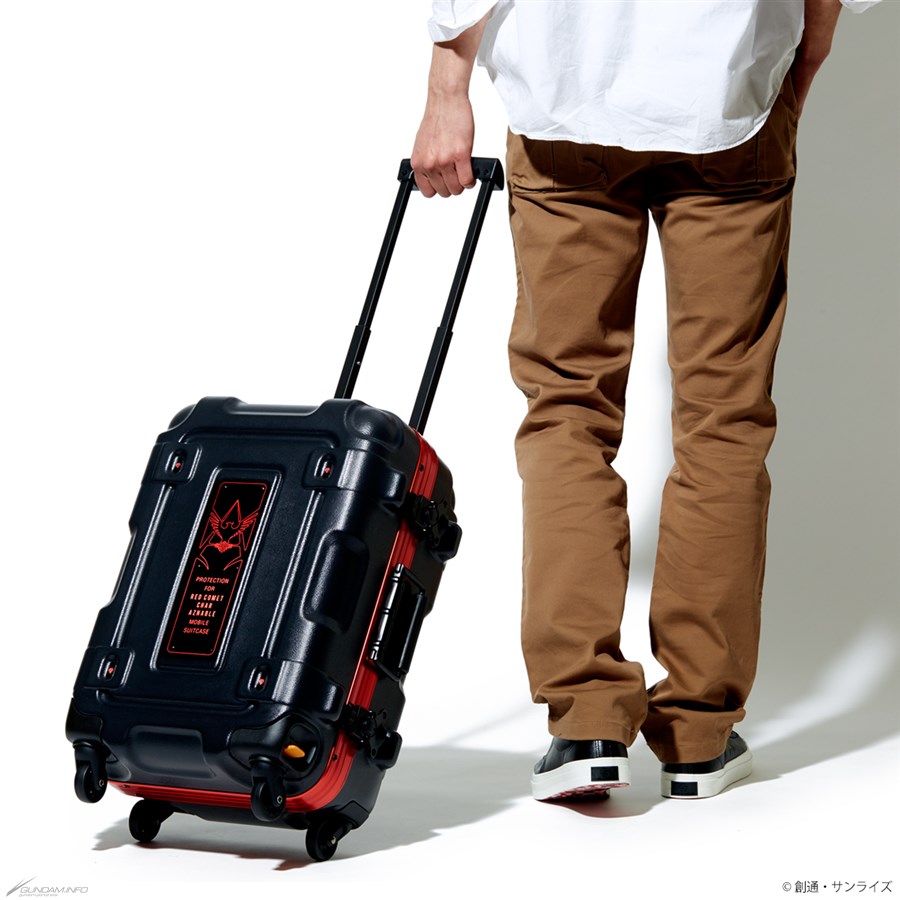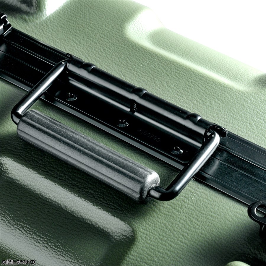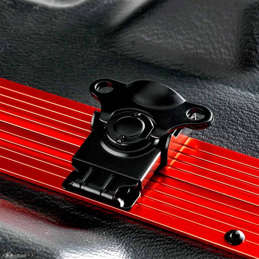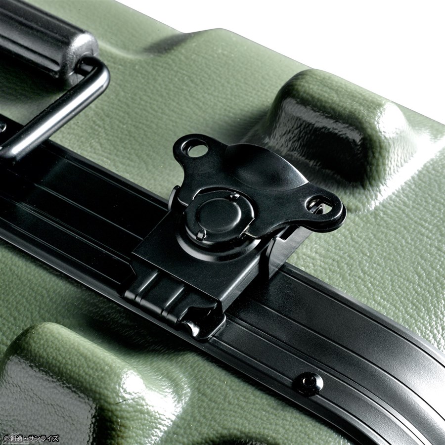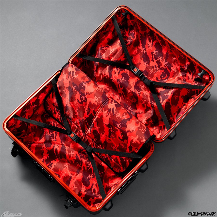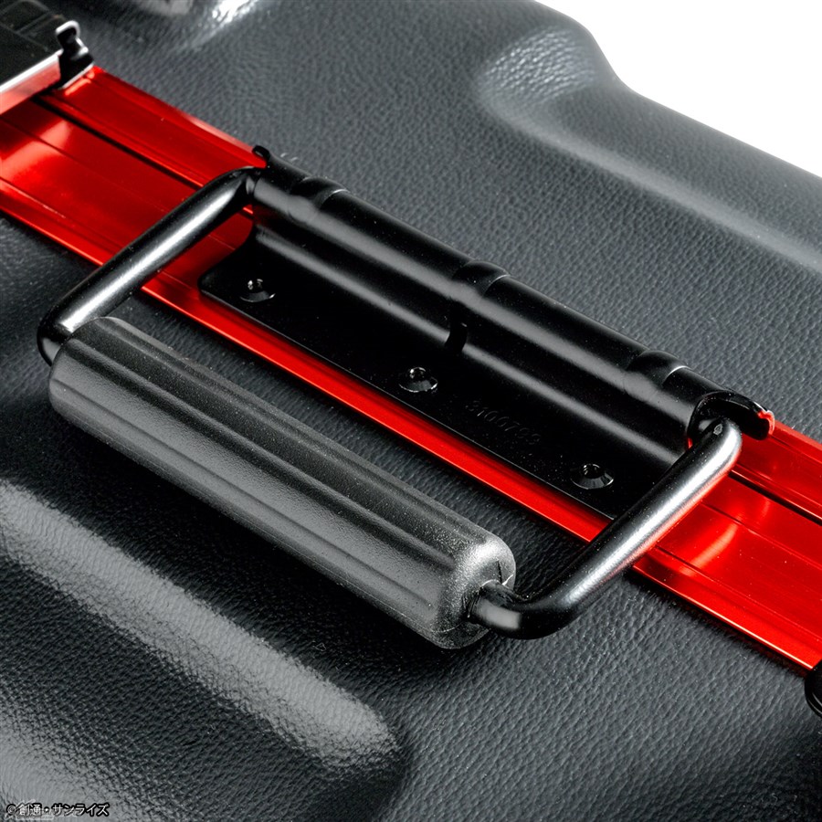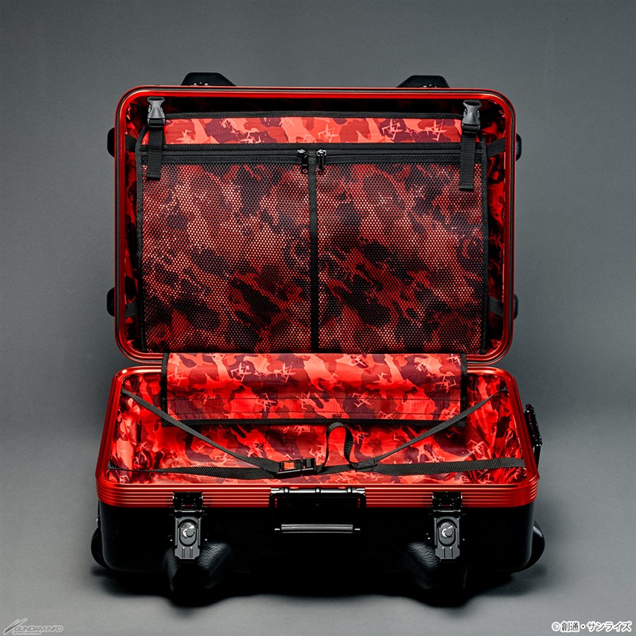 從吉翁軍款式刻有「PROTECTION FOR PRINCIPALITY OF ZEON MOBILE SUITCASE」、及夏亞款式刻有「PROTECTION FOR RED COMET CHAR AZNABLE MOBILE SUITCASE」的箱身前面的鋁製徽章到内裝布料,皆是為了本次合作特別設計的規格。伴隨著兼具設計感和防護性的PROTEX CORE CR系列原有骨架(凹凸)構造,是款充滿軍事感的成品。