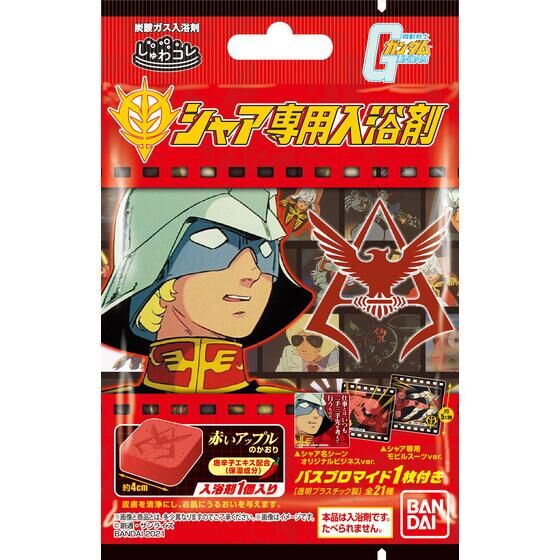 入浴劑和沐浴圖卡組合販售「ShuwaKore」系列新推出的「機動戰士鋼彈 夏亞專用入浴劑」,今天12月13日(一)起開始在全日本的量販店及藥妝店販售。價格為330日圓(含稅)。