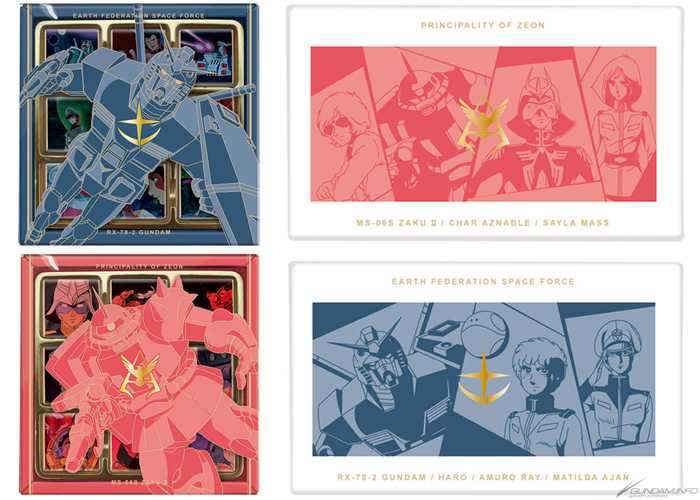 白色情人節限定禮品將使用簡單的配色、標誌、型號等資訊,讓地球聯邦軍及吉翁公國軍軍徽、角色、MS等象徵性題材以時髦的原創設計登場。