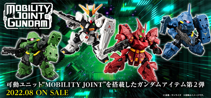BANDAI CANDY事業部推出的新鋼彈食玩系列「MOBILITY JOINT GUNDAM」,決定於8月發售「VOL.2」。售價為各649日圓(含稅)。