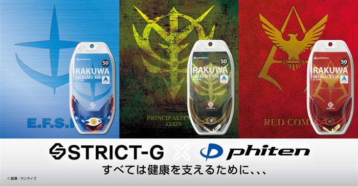 採納鋼彈世界觀的成衣商店「STRICT-G」,於明天6月4日(六起)發售「Phiten」與『機動戰士鋼彈』的3款聯名商品「RAKUWA項鍊」。