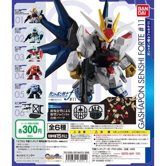 轉蛋商品「機動戰士鋼彈轉蛋戰士FORTE11」將於4月第4週起在日本國內玩具賣場等處的轉蛋自動販賣機發售。售價為1次300日圓(含稅)。