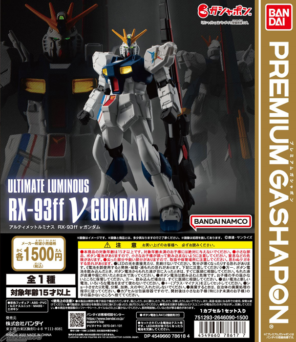 「Mitsui Shopping Park Lalaport福岡」内「namco Lalaport福岡店」,現正好評發售轉彈商品「Ultimate Luminous RX-93ff ν鋼彈」。價格為1,500日圓(含稅)。