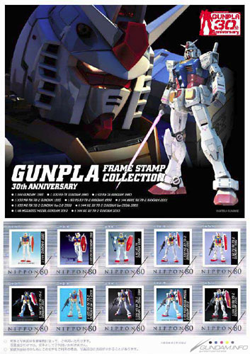 以歷代鋼彈模型為設計的原創郵票組合「『GUNPLA FRAME STAMP COLLECTION』30th ANNIVERSARY」於3月25日(五)在靜岡市郵局限量發售5,000組。