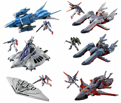 除了有寫實造型的戰艦模型之外,還附有象徵本系列的專用台座及迷你MS。共有6種。