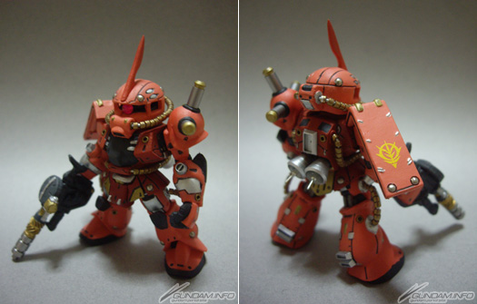 夏亞專用薩克的武裝強化、機動力強化以實現3倍以上的速度! 此外還強化了足部提升“夏亞飛踢”的攻撃力,一踢就能踢爆鋼彈(笑)。
