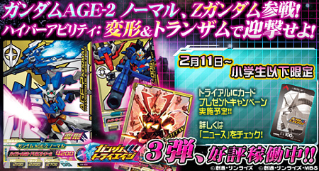 電子卡片遊戲 GUNDAM TRY AGE 第3彈 -次世代的創造者們- 現正營運中 1次100日圓(含稅) |