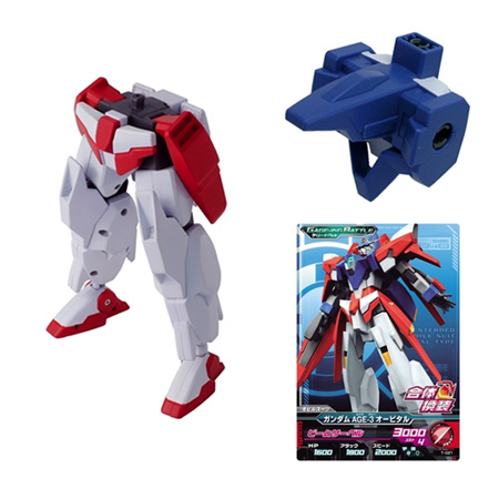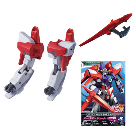 設置於全國的「GAGE-ING BATTLE BASE」以掃描各部位搭載的晶片進行遊玩的玩具「GB(GAGE-ING BUILDER)系列」推出『機動戰士鋼彈AGE』奇歐篇主角機「鋼彈AGE-3」G裝備「軌道型手臂」、「軌道型腿部」登場!
