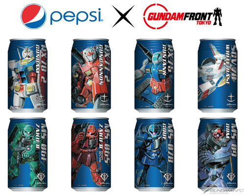 「百事可樂 設計罐」,描繪於『機動戰士鋼彈』登場的「RX-78-2 鋼彈」及「MS-06S 夏亞專用薩克」等,全8種類的圖樣設計。