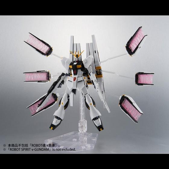 能大大提高ROBOT魂ν鋼彈可玩性的擴張套裝登場 ・飛翔炮防護罩終於商品化! ・附有於傳說中的最終決戰時、手持沙薩比駕駛艙的ν鋼彈右手替換配件! ・追加浮游飛翔炮!可玩性大大提高! ・附有轉換形態用的追加武裝! 享盡ν鋼彈的多種玩法! |