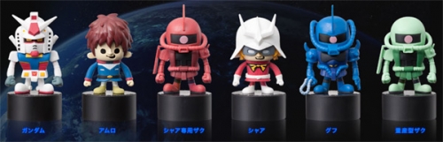 由左起,鋼彈 / 阿姆羅 / 夏亞專用薩克 / 夏亞 / 薩克 / 量產型薩克