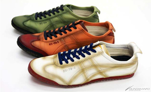 本次的異業合作鞋款以 “真正的日本”為基礎概念所展開的「NIPPON MADE」系列基本款「MEXICO 66 DELUXE」為基底,加上具代表性的MS「鋼彈」的象徵配色(白色×白色),加上象徵「薩克II」的代表色(軍綠×軍綠),象徵「夏亞專用薩克」的顏色(紅色×紅色)共有三色系的鞋款。