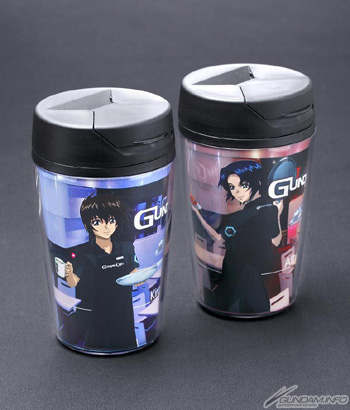 共販售有2款插畫圖案以「煌・大和」與「阿斯蘭・薩拉」為設計的隨行杯,這張描繪他們穿著GUNDAM CAFÉ工作制服在餐廳內工作情形的插畫,是由『機動戰士鋼彈SEED』作畫導演米山浩平老師所親筆繪製的完全原創插圖。