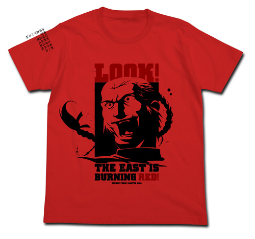 「東方正熊熊燃燒!T恤」是由東方不敗亞洲天王與他的名台詞「看吧!東方正熊熊燃燒!」的英語翻譯印在正面,袖口上則是印製“流派東方不敗”的拳法家同伴相遇的時候需要以訓讀念出漢詩,這樣的一件商品。