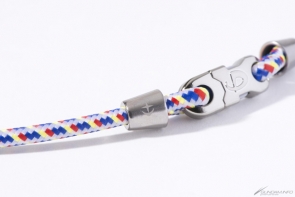 「夏亞型」就是使用Jacquard編織重現機體配色,純鈦合金零件上有「吉翁公國軍標誌」的刻印。兩件商品都有矽氧樹脂製的滑動零件,上面有「STRICT-G」的LOG設計。