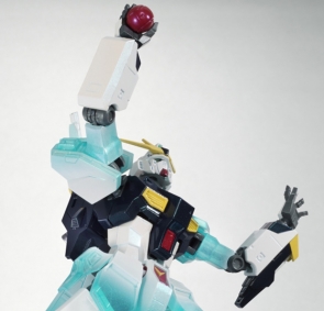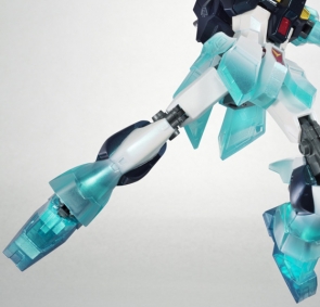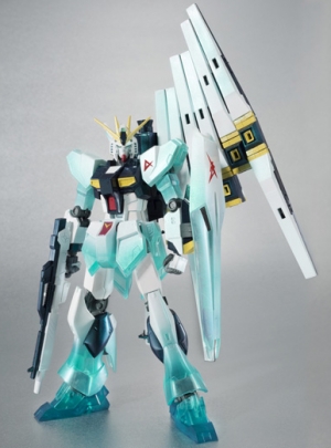 「ROBOT 魂 ν鋼彈(腦波傳導框體發動Ver.)」是在透明材質的軀體上噴上珍珠塗裝,重現了ν鋼彈的腦波傳導框體發動狀態的商品,並由於使用了光學覆膜,表現出不同於一般商品的裝甲質感。另外,還附有抓住沙薩比逃生艇的手部零件。